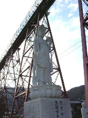 昭和63年10月23日、加工場のあった場所に聖観世音菩薩が建てられ、毎年12月28日には法要が営まれている。碑には花が供えられていた。
