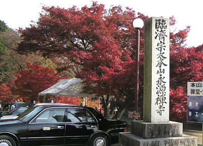 滋賀の紅葉の名所「永源寺」へ。近年、温暖化の影響か紅葉が遅くなっており、丁度見頃であった。が、残暑が長かったためか、色の鮮やかさは今一つの思いであった。それでも、臨時バスはピストン運転で大勢の人出。参道には、名産の「こんにゃく」の田楽、甘酒をはじめ土産などを売る店が建ち並ぶ。境内も人人人、写真を撮ろうにも頭ばか